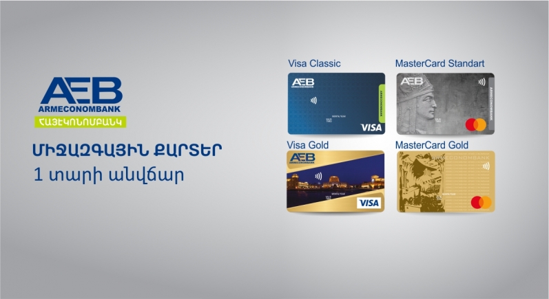 - Mastercard Standart - առաջին տարին՝ անվճար, հետագայում` 2,000 դրամ (60% զեղչ), գործողության ժամկետ՝ 3 տարի